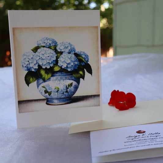 Single Greetings Card - Blue Hydrangea